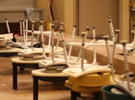 Glaze area with a variety of glazes, including cone 5/6 oxidation, cone 10 reduction, and raku glazes